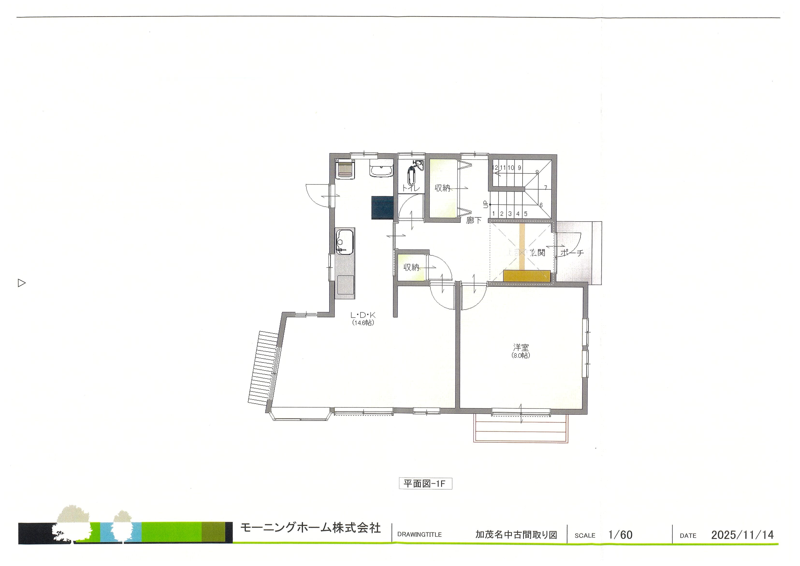 1階面積:60㎡ (18.15坪) 2階面積:52㎡ (15.73坪) |