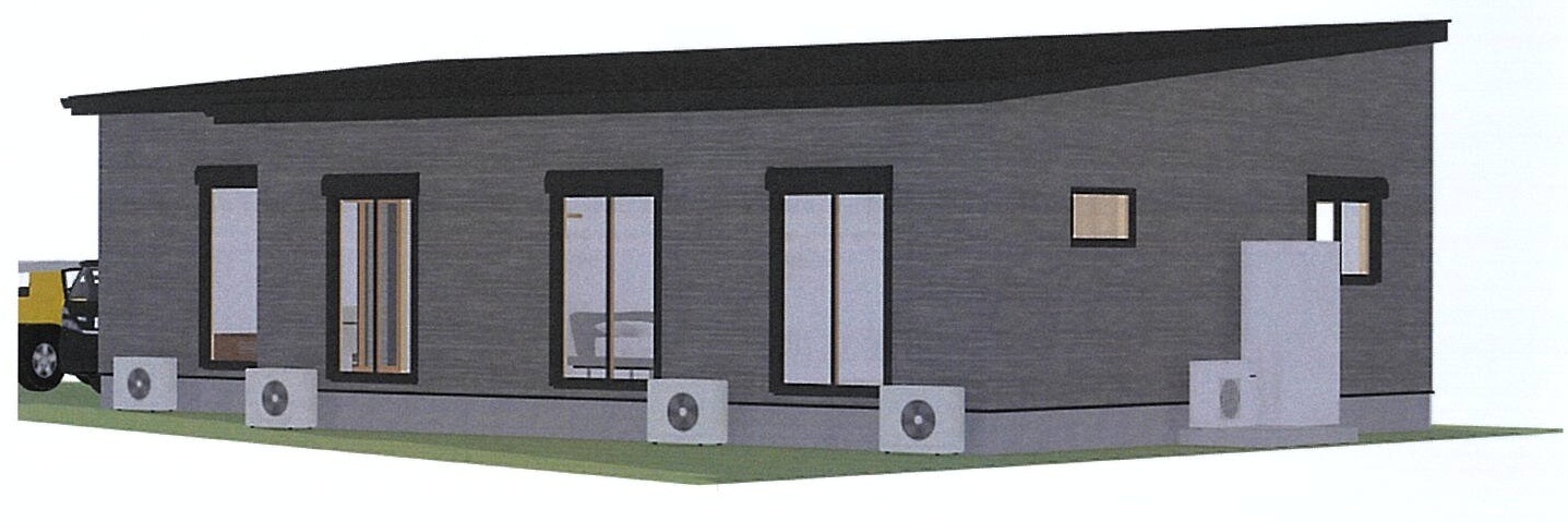 県道14号線沿いにてモデル建築中。